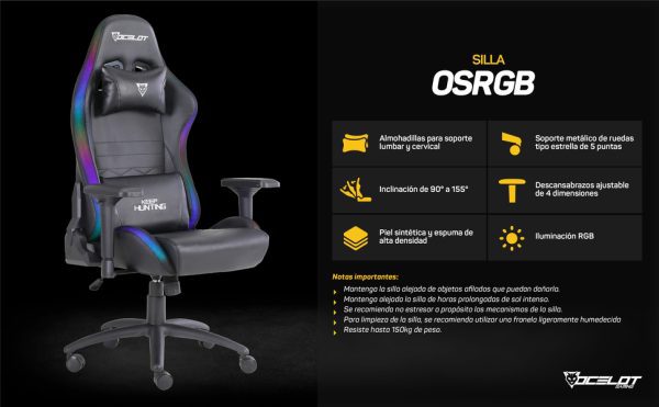 Porque no es solo una silla, es una experiencia. Imagina sumergirte en tu juego favorito, rodeado de luces RGB y sintiendo la comodidad de un asiento diseñado específicamente para gamers. Con la Ocelot RGB, cada partida será una aventura inolvidable.